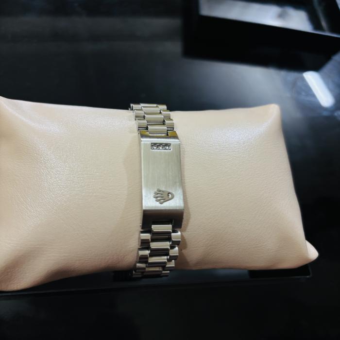 মেটাল লিংকের সিলভার-নীল কনট্রাস্ট ডিজাইন, সাথে আছে ক্রাউন লোগো – যা আপনার হাতের সাজে যোগ করবে এক্সক্লুসিভ লুক।